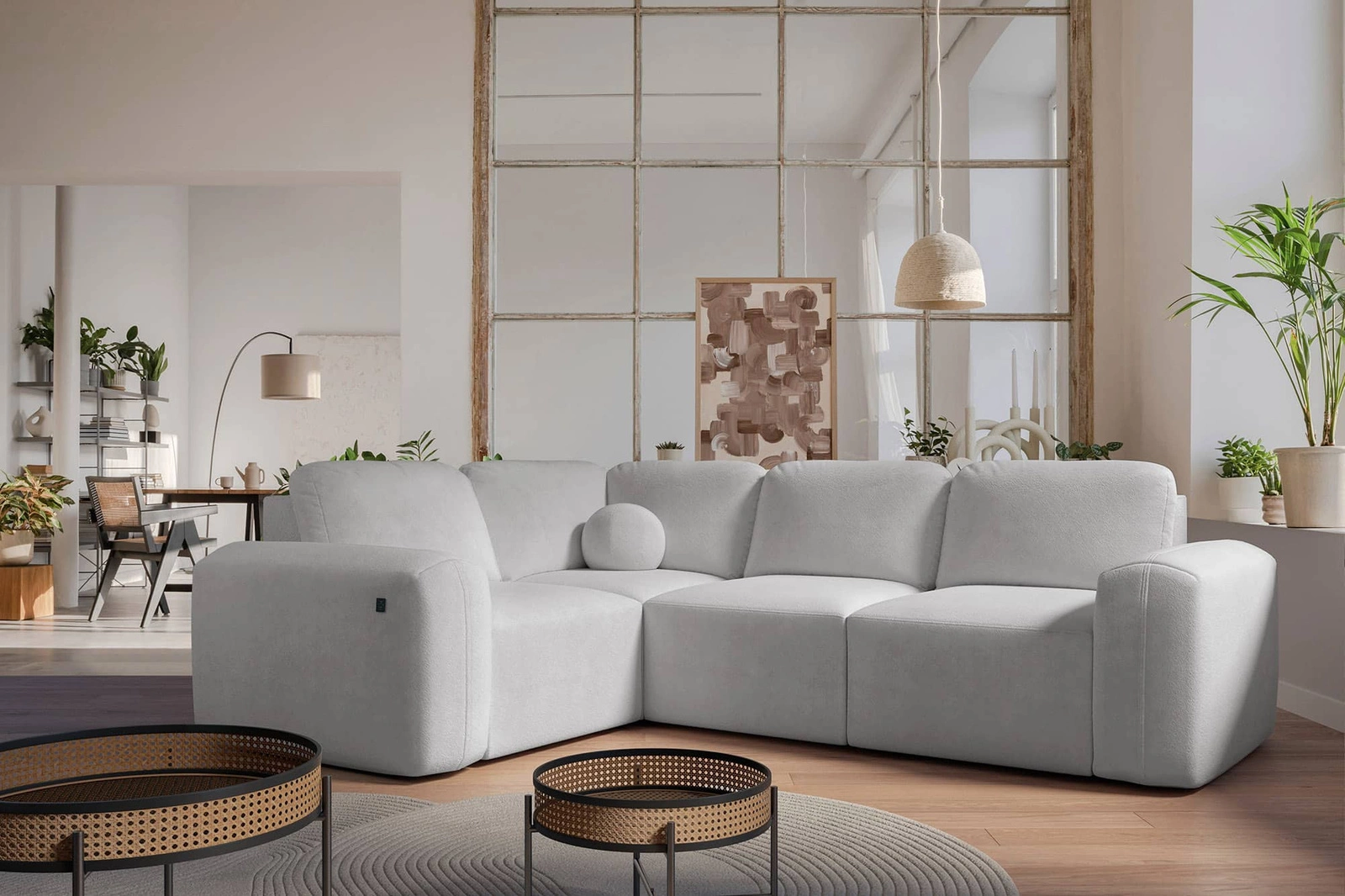 Tkanina čalounická tkanina Velo kombinuje styl, odolnost a pohodlí. Struktura tkaniny s jemným plátnem na povrchu dodává jedinečný charakter a zároveň poskytuje mimořádnou měkkost a hřejivost na dotek. Tkanina je nehořlavá, a snadno se udržuje v čistotě. Materiál má vysokou odolnost proti roztřepení a vlastnosti hydrofobní zabraňuje vstřebávání tekutin. Díky tomu bude roh dlouho vypadat esteticky a elegantně. Rohová jednotka je vyrobena z vysoce kvalitních materiálů, které jsou odolné vůči vnějším vlivům, jako je čalounění a různé druhy nárazůa.