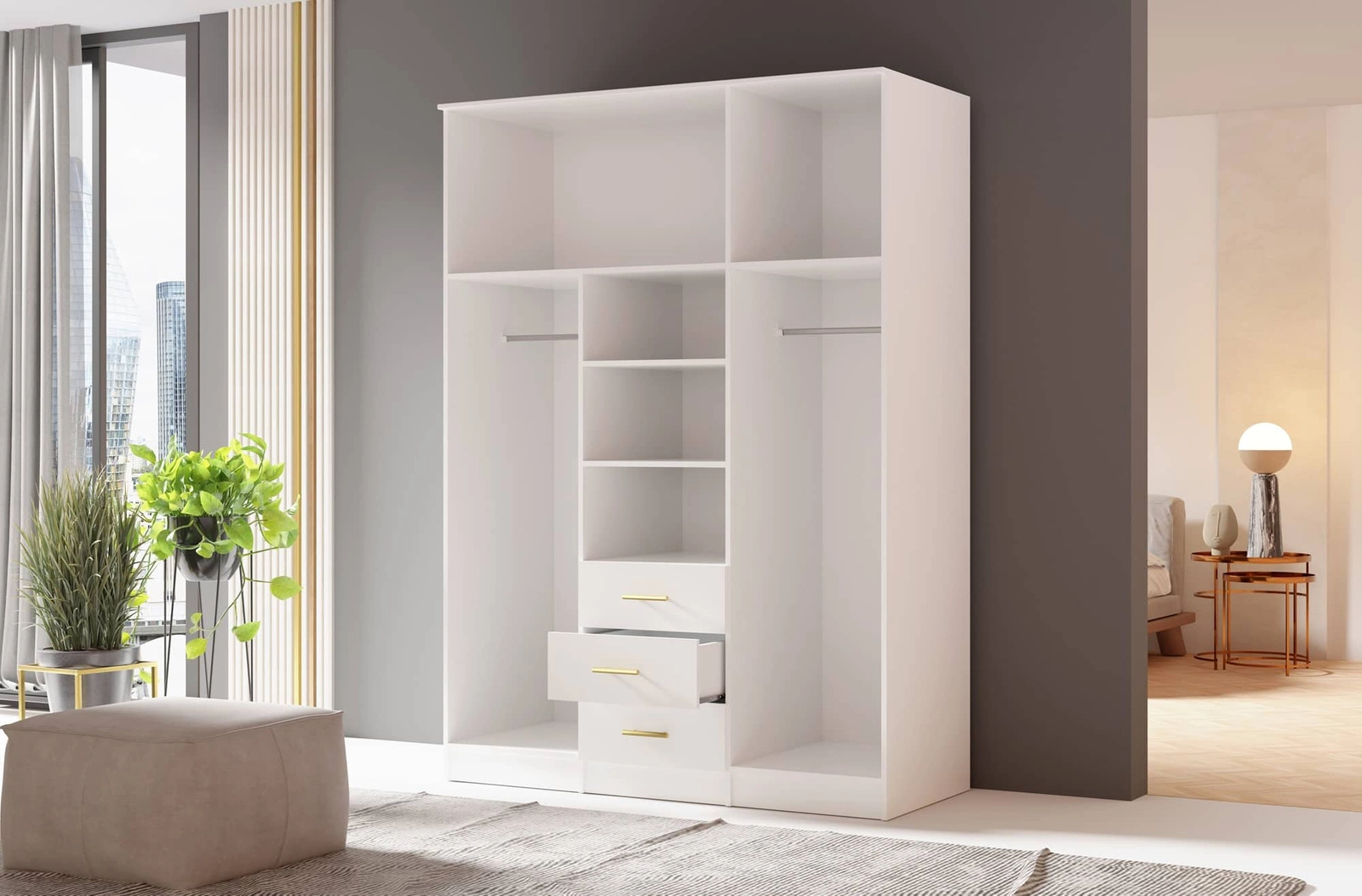 Zrcadlová šatní skříň je vyrobena ze 3 dveře a 3 zásuvky. Kabinet zaručuje pohodlné i bezproblémové požitek a trvanlivost celého nábytku po mnoho let používání. Kombinace klasické bílé se zlatými rukojeťmi dělá šatník úspěšným jako šatní skříň do ložnice, jako předsíňová skříň nebo skříň do pokoje dětské. Třídveřové skříně Adel bude také skvělá volba pro pokoj baby. Skvěle se hodí i jako šatní skříň do předsíně.