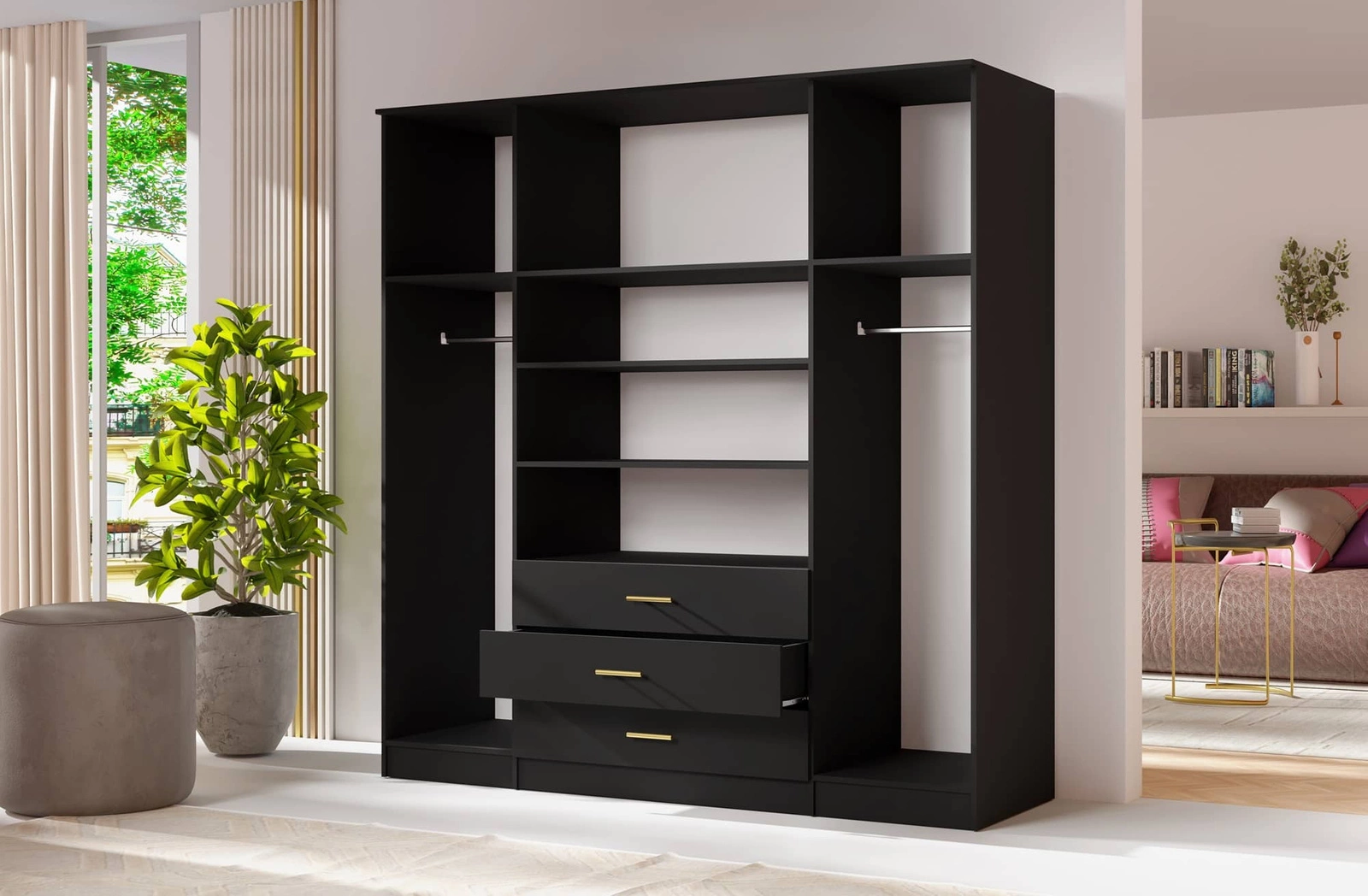 Výklopná šatní skříň Adel v černé barvě je mimořádně funkční kus nábytku, který najde uplatnění v mnoha interiérech.