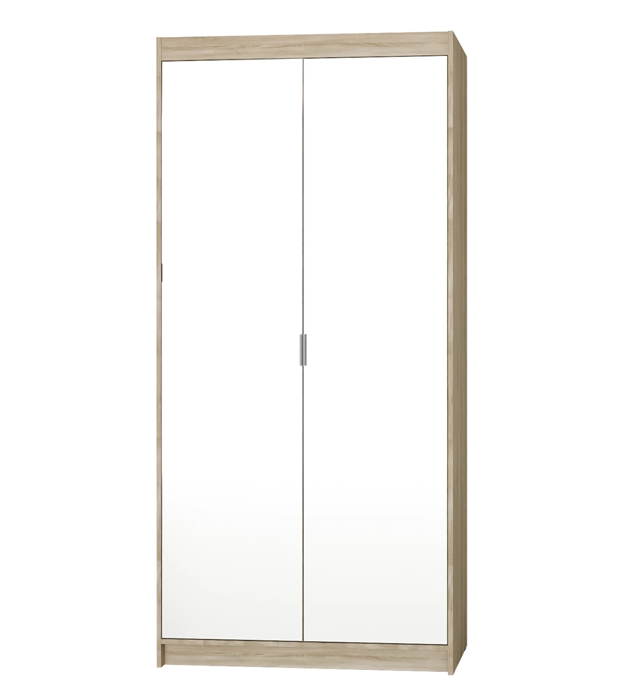 Šatní skříň Rene 90 cm dub sonoma světlá stylový design jednoduchý tvar šatní skříně se zrcadlem do ložnice nebo předsíně hrany s povrchovou úpravou ABS