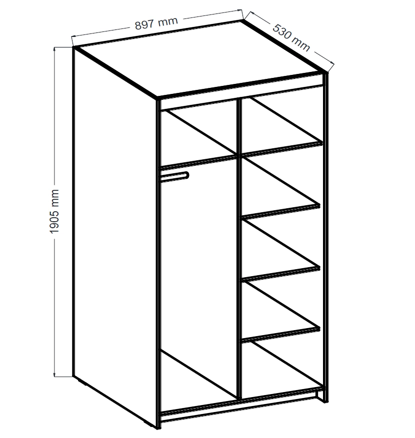Šatní skříň Rena je rozdělena na část s tyčí pro zavěšení oděvů i díl s policemi. Dveře šatní skříně mají povrchovou úpravu velkými zrcadly která opticky zvětšuje a rozjasňuje místnost. Robustní konstrukce z vysoce kvalitní laminované desky zajišťuje odolnost a stabilitu skříně, což zaručuje dlouhodobou spokojenost s používáním.