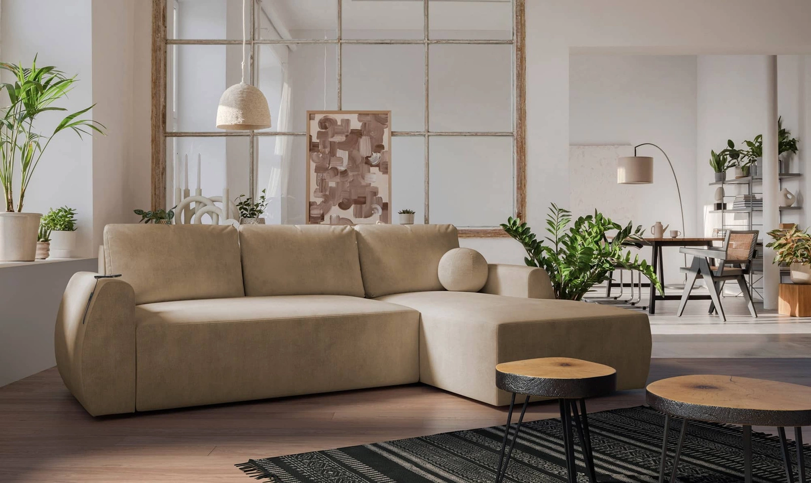 Rohová jednotka s funkcí spánku Colio kombinuje funkčnost s mimořádně elegantní formou. Původnístruktura rohu byla pokryta velurovou tkaninou Vlna 4. Rohová jednotka se vyznačuje neobvyklým designem zdůrazněným zaobleným tvarem, výjimečně měkký a pohodlný sedák a vysoká kvalita zpracování. Hladký povrch celé konstrukce umožňuježe kompozice rohu je ucelená, uzavřená v minimalistickém tónu. Vkusné opěrné polštáře poskytnou této vysoce moderní rohové pohovce ještě větší pohodlí a komfort. Moderní design rohu je ideální pro každý interiér ve vašem oblíbeném stylu.
