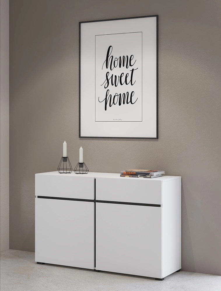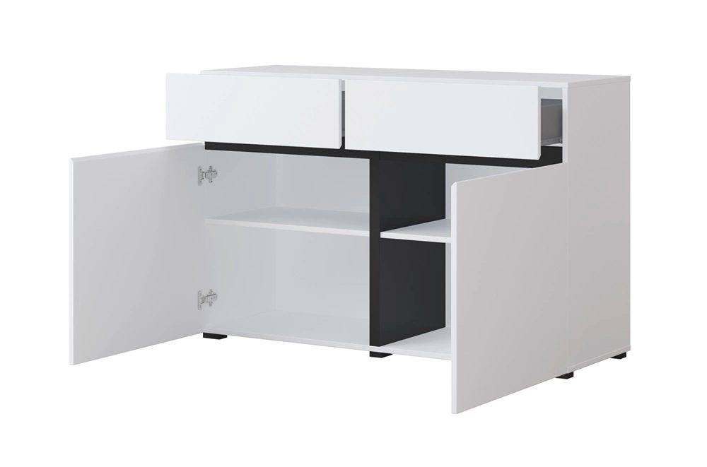 Komoda je vyrobena ze 2 dveře a 2 zásuvky rozšíření na válečkové dráhy. Komoda se zásuvkami je vyrobena z vysoce kvalitní laminované desky, který je odolný vůči vnějším vlivům, jako jsou otlaky, nárazy a nešťastné škrábance. Díky své jednoduché formě a všestrannosti je komoda Cross ideální komodou do obývacího pokoje s moderním designem povrchovou úpravou, komody do obývacího pokoje nebo komody do ložnice v modernistickém stylu. Moderní komodu lze s úspěchem použít i jako kancelářský nábytek.