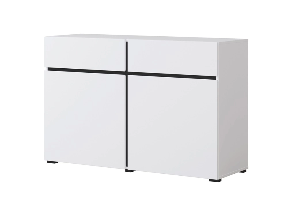 Komoda Cross 119 cm v bílé barvě je ideální volbou nábytku pro milovníky minimalistických interiérů.