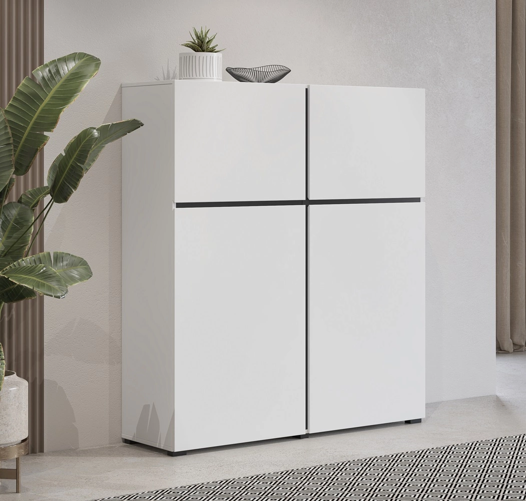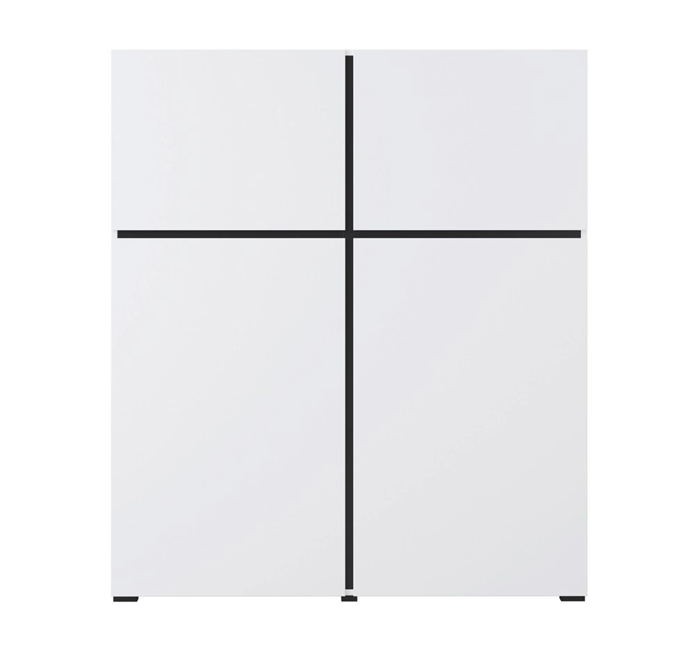 119 cm vysoká komoda Cross v bílé barvě je ideální volbou nábytku pro milovníky minimalistických interiérů.