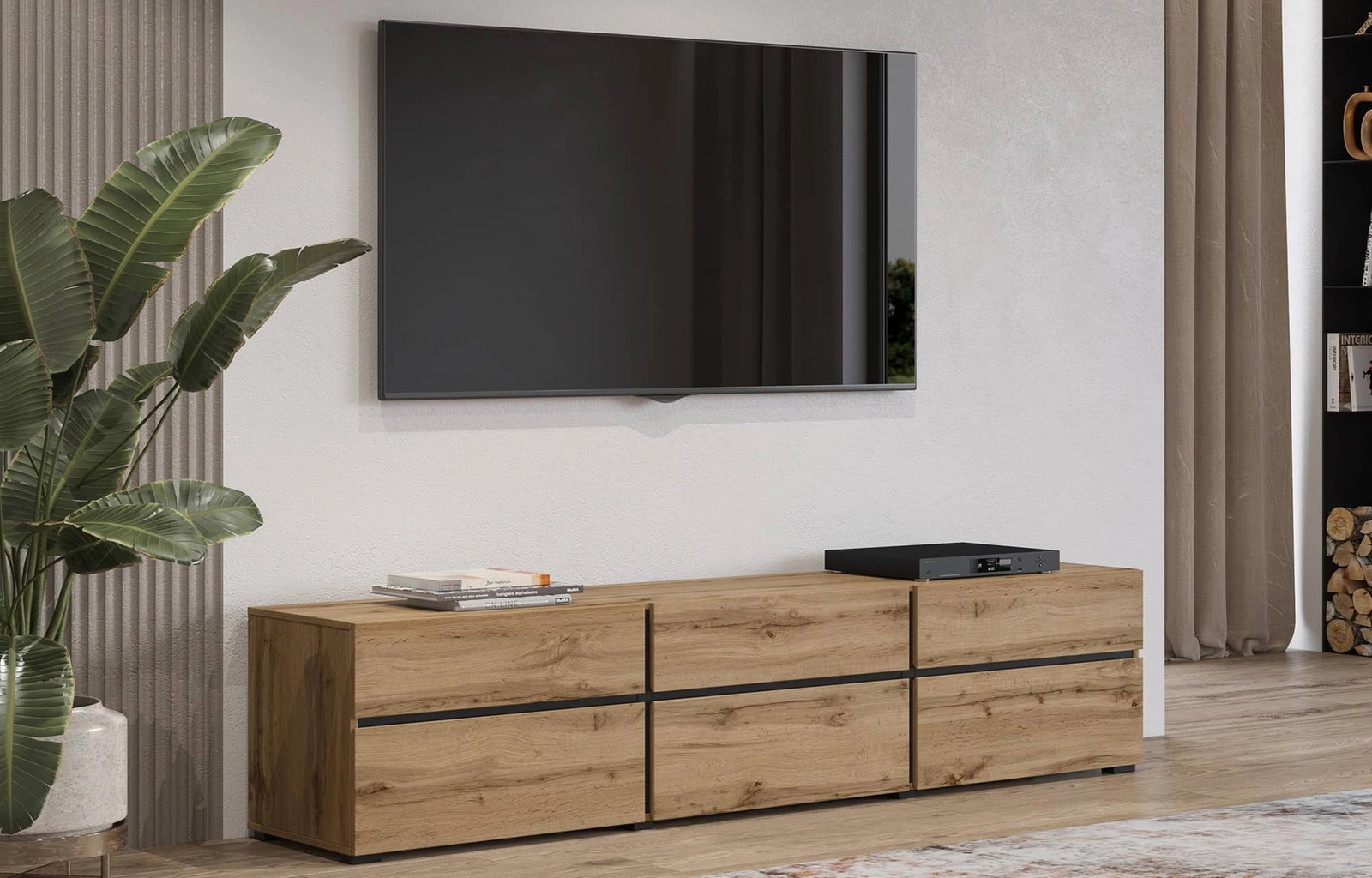 Skříňka RTV Cross 180 cm z dubu wotan je vynikajícím kusem nábytku pro milovníky minimalistických interiérů.