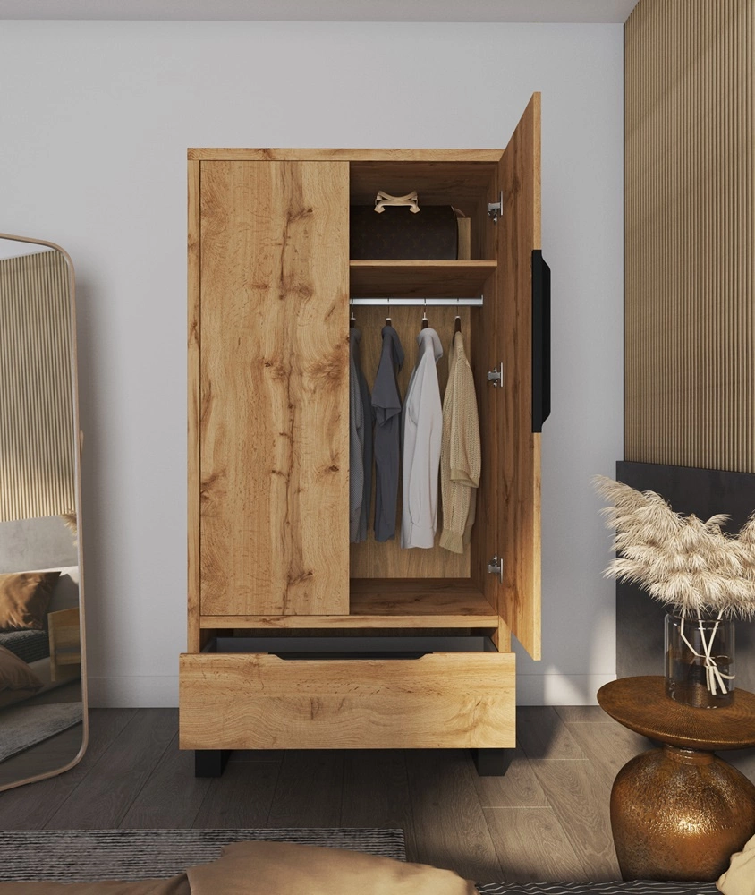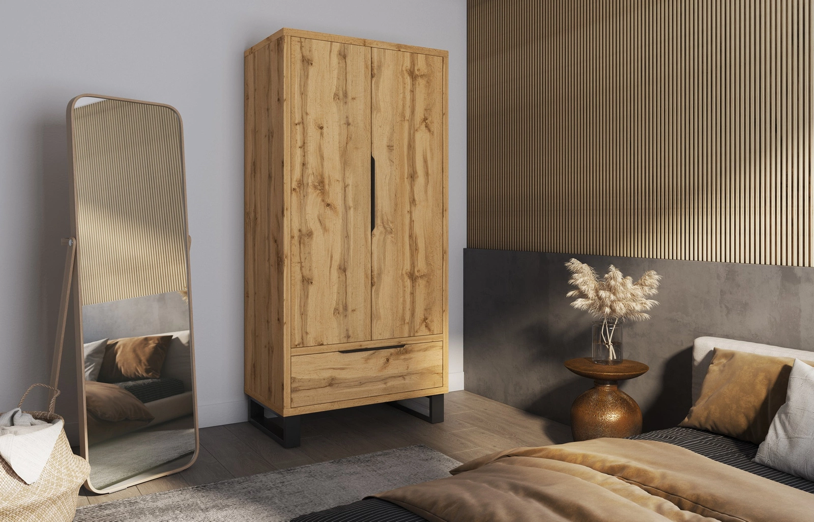Šatní skříň Halle 99 cm dub wotan stylový design klasický tvar šatní skříň do ložnice nebo šatny prostorné zásuvky úchyty na hraně