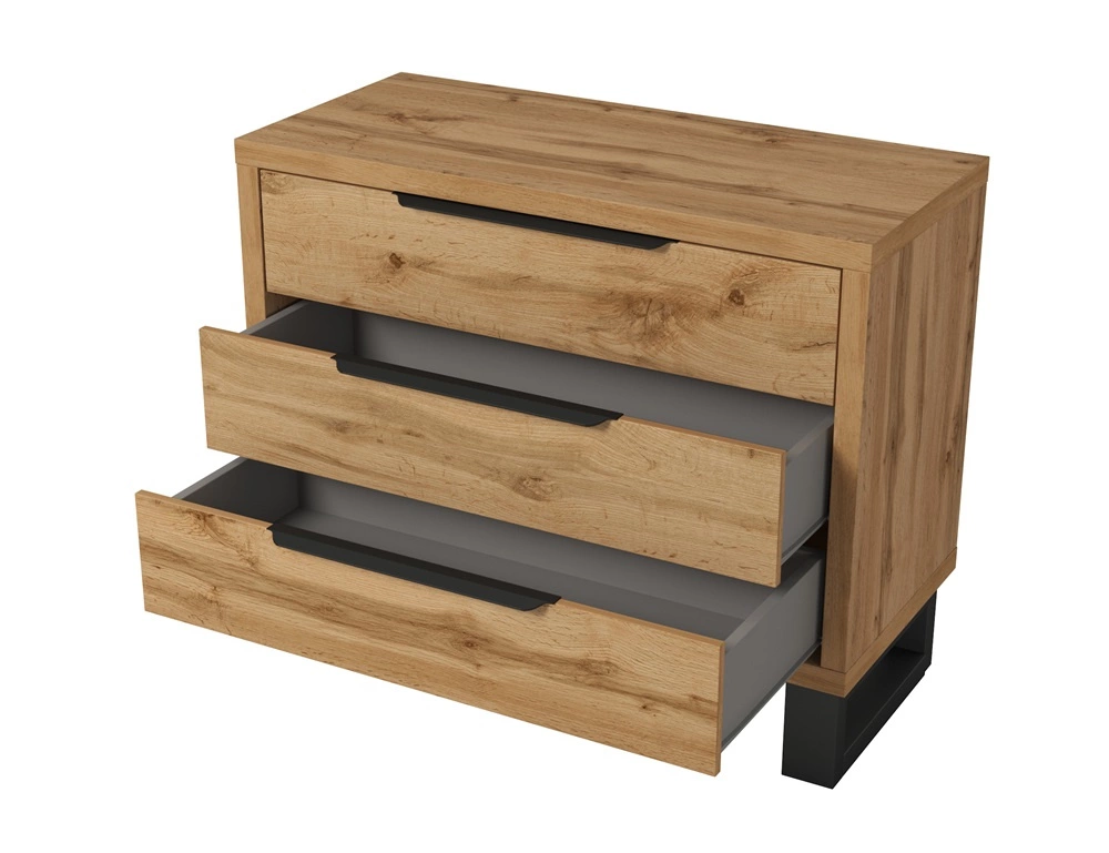 Komoda Halle S 99 cm dub wotan funkční ideální komoda do ložnice v loftovém stylu stylové úchyty na hraně