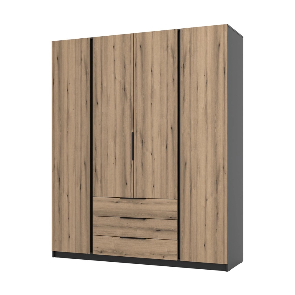 Šatní skříň Kastano v barvě černá / dub evoke je estetický a funkční kus nábytku, který se uplatní v mnoha interiérech.