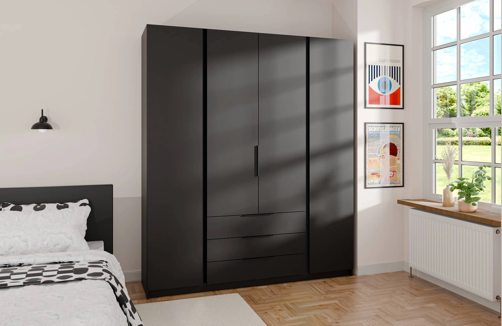 Šatní skříň Kastano v černé barvě je estetický a funkční kus nábytku, který najde uplatnění v mnoha interiérech.