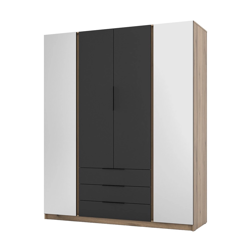 Skříň je vyrobena z 4 dveře a 3 zásuvky výsuvy na pojezdech Quadro. Zásuvky Quadro se vyznačují hladkým chodem a vysokou nosností. Kabinet zaručuje pohodlné i bezproblémové požitek a trvanlivost celého nábytku po mnoho let používání. Módní pdíky barevné kombinaci je šatník úspěšný jako šatní skříň do ložnice, jako předsíňová skříň nebo skříň do pokoje dětské. Šatní skříň Kastano II bude také skvělá volba pro pokoj baby. Skvěle se hodí i jako šatní skříň do předsíně.