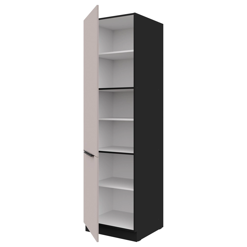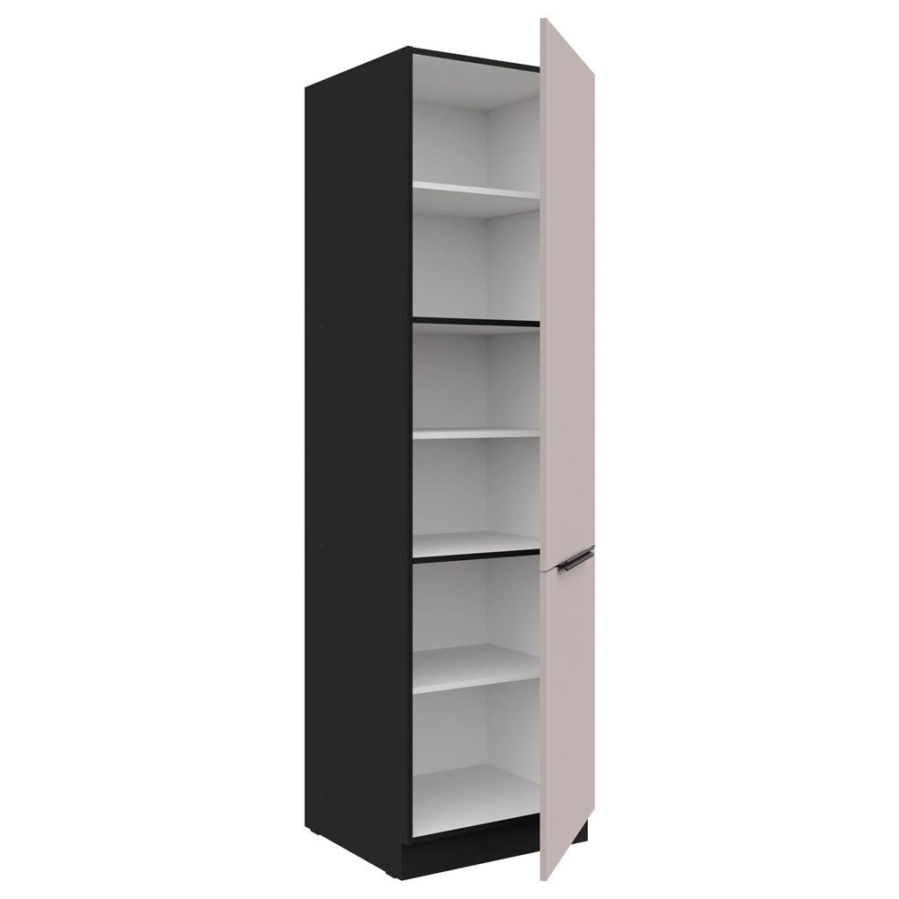 Díky svému univerzálnímu umístění se kuchyňský nábytek hodí do interiéru každé kuchyně. Černé korpusy a béžová čela podtrhují eleganci kuchyňských skříněk. Stylovým doplňkem čel kuchyňských skříněk je černá, kovové okrajové držáky, které kromě své primární funkce dodávají nábytku zvláštní nádech.