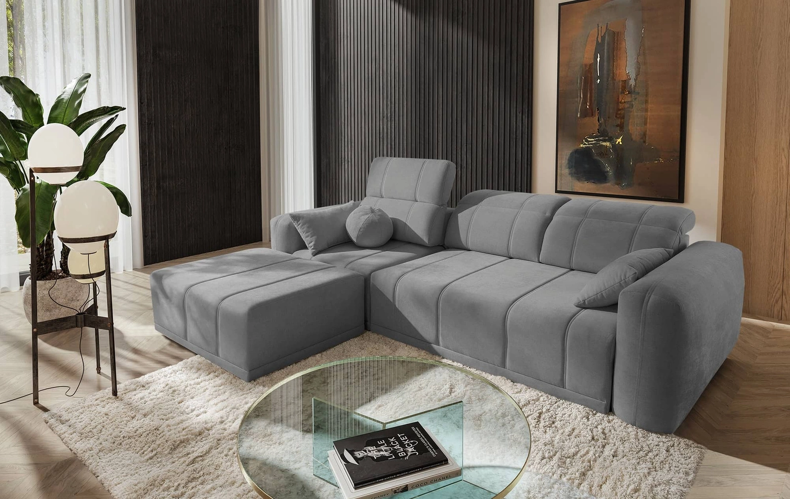 Rohová pohovka Cetara v šedé barvě je mimořádně funkční kus nábytku se stylovou povrchovou úpravou.
