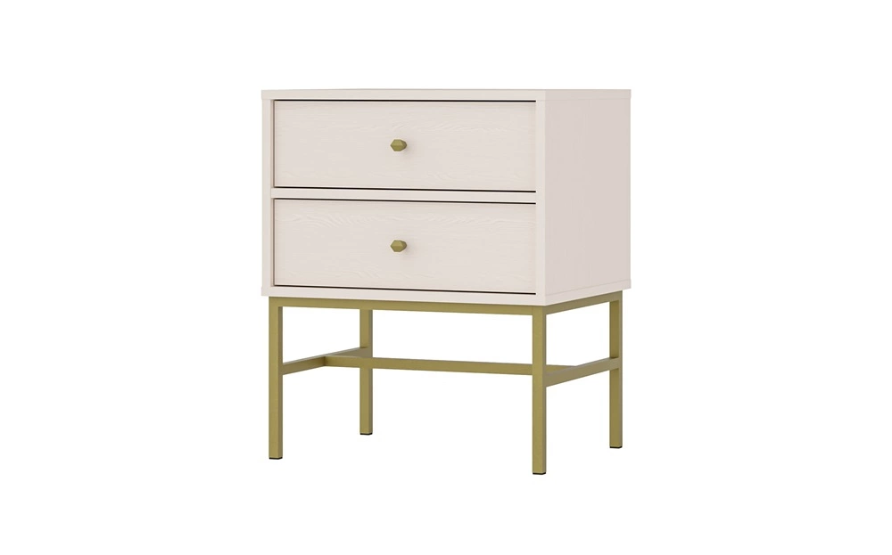 Noční stolek Kioto III béžový se zásuvkami ideální do ložnice subtilní úchyty kovový rám