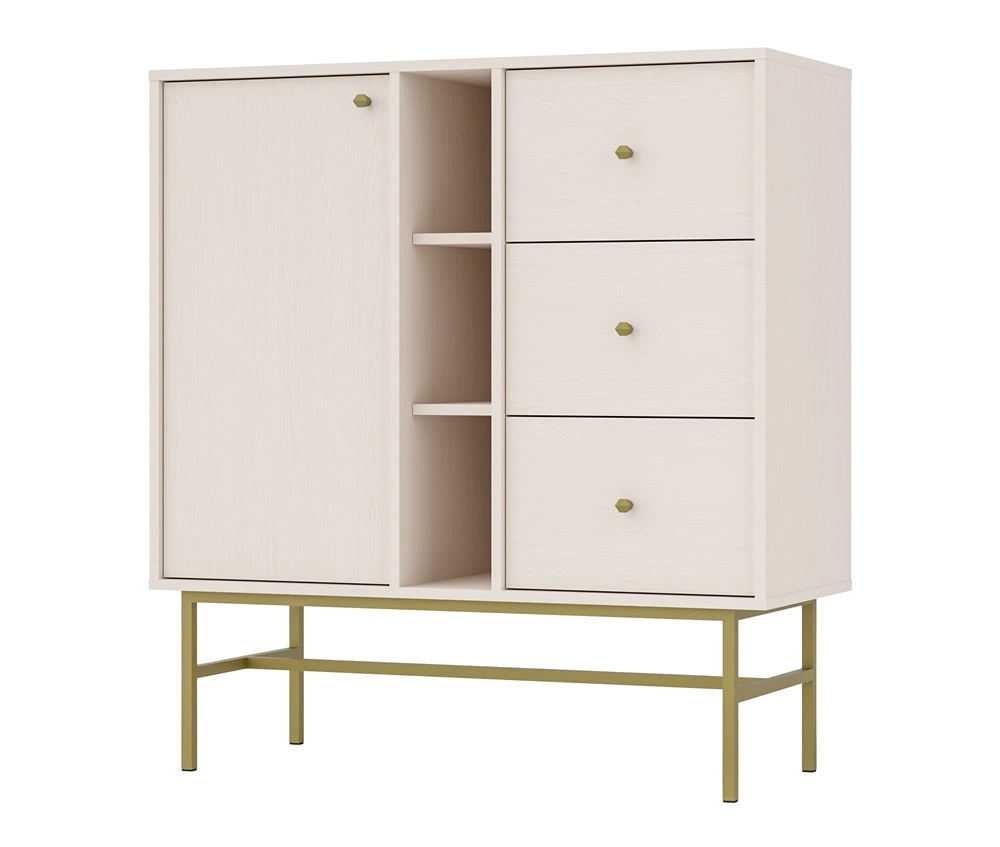 Zásuvková komoda Kioto III 100 cm béžová moderní design praktické police zlaté úchyty stabilní kovový rám