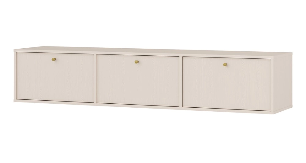 Nástěnná RTV skříňka Kioto IV v béžové barvě je stylový kus nábytku, který dokonale zapadne do každého obývacího pokoje nebo obývacího pokoje.