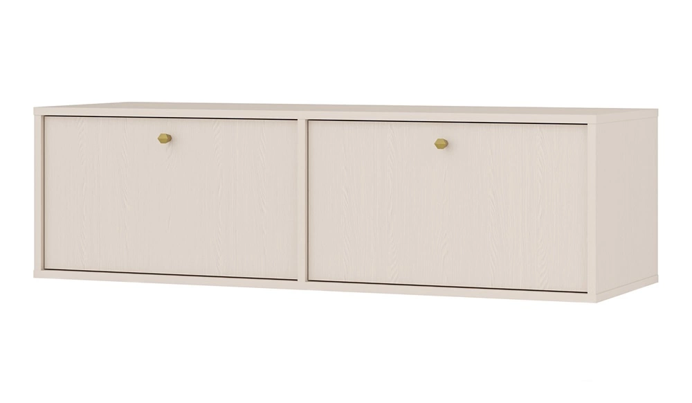 Nástěnná RTV skříňka Kioto IV v béžové barvě je stylový kus nábytku, který dokonale zapadne do každého obývacího pokoje nebo obývacího pokoje.
