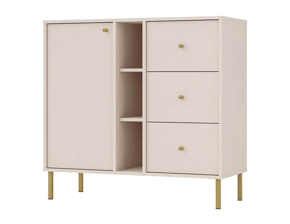 Zásuvková komoda Kioto II 100 cm béžová moderní design praktické police zlaté úchyty stabilní kovová základna