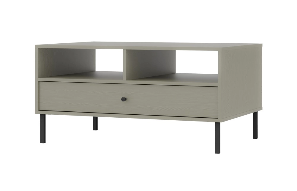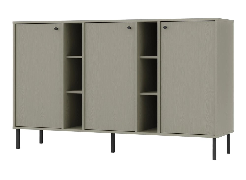 Nástěnná skříňka Kioto je vyrobena z vysoce kvalitní laminované desky tloušťka 16 mm, která je odolná vůči vnějším vlivům, jako jsou otlaky, nárazy a nešťastné škrábance. Otevřené police komoda umožňuje vystavit doplňky, které zdobí váš obývací pokoj. Kovové nohy w černá dodávají vizuální lehkost při zachování funkčnosti.