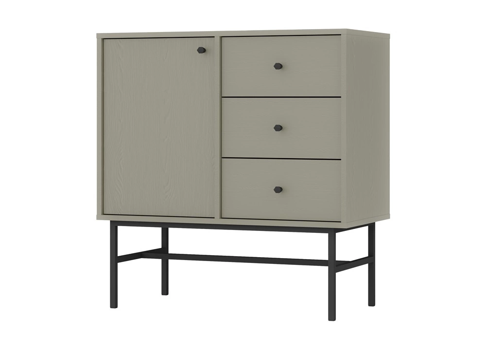 Zásuvková komoda Kioto III 84 cm eukalyptus moderní design decentní černé úchyty kovový rám ideální komoda do obývacího pokoje