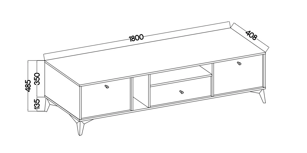 Skříň RTV je vyrobena z vysoce kvalitní laminované desky tloušťka 16 mm, která je odolná vůči vnějším vlivům, jako jsou otlaky, nárazy a nešťastné škrábance. Otevřené police v neobvyklé konfiguraci je to skvělé místo pro rtv zařízení nebo herní konzoli. Kovové nohy w zlatý barva dodávají vizuální lehkost při zachování funkčnosti.