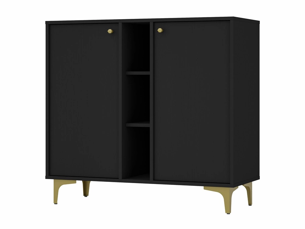 Komoda Kioto I 100 cm černá grafitová moderní design praktické police zlaté úchyty kovová základna
