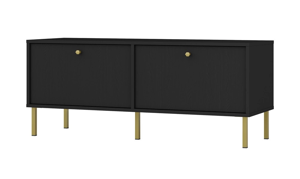 RTV skříň Kioto II 121 cm černá grafitová elegantní skříň s dvířky otevíranými dolů nadčasové barvy kovový podstavec