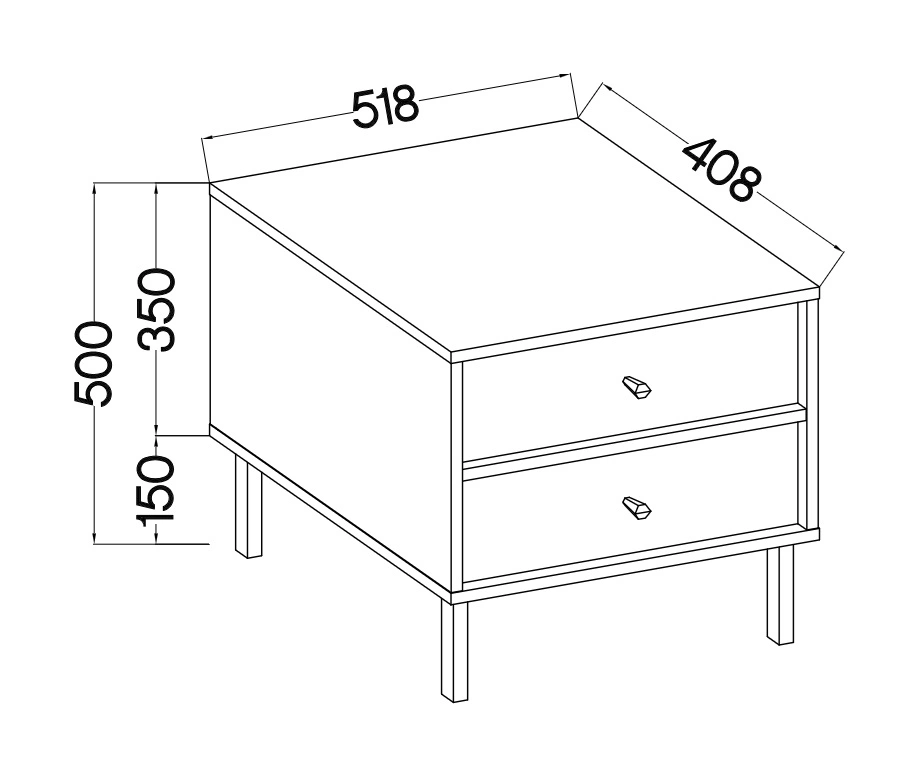 Noční stolek je vyroben z vysoce kvalitní laminované desky tloušťka 16 mm, která je odolná vůči vnějším vlivům, jako jsou otlaky, nárazy a nešťastné škrábance. Kovové nohy w zlatý barva dodávají vizuální lehkost při zachování funkčnosti.