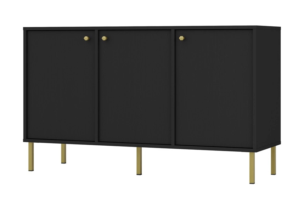 Kioto II 125 cm černá grafitová minimalistická forma ideální komoda do ložnice, obývacího pokoje nebo pokoje teenagera zlaté úchyty
