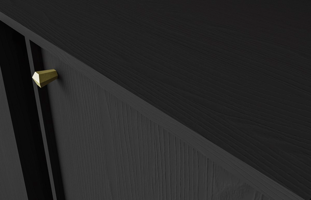 Komoda Kyoto je nádherný kus nábytku se zvláštním a jedinečným charakterem. Neobvyklá kombinace tmavě grafitová se zlatými rukojeťmi celý vzhled je decentní a velmi stylový. Staženo ve vztahu k jatečně upravenému tělu, přední části kromě toho, že vytvářejí výraznou dekoraci, dodávají jemnost a eleganci. Komody ze sbírky Kjóto je jedinečný projekt, který svou formou a designem dokonale zapadá do prostředí opatření v japonské a moderní styly.