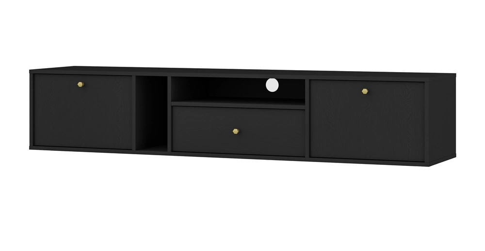 Nástěnná RTV skříňka Kioto IV 180 cm černá grafitová elegantní skříňka v nadčasových barvách jemné zlaté úchytky