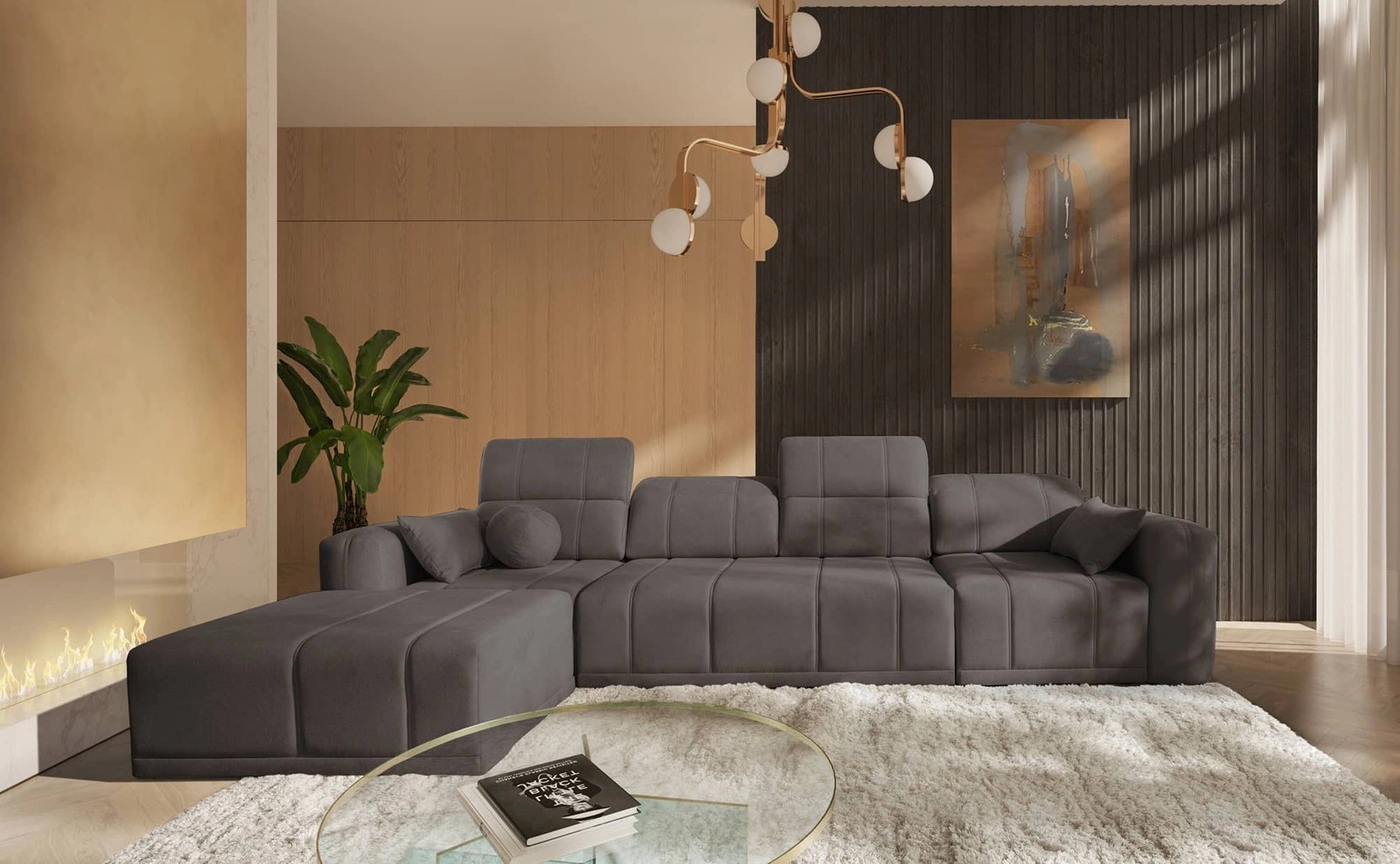 Rohová jednotka s funkcí spánku Cetara XII kombinuje funkčnost s mimořádně stylovým a elegantním tvarem. Celá je pokryta tkanina pletený typ Vítr 21. Rohová jednotka se vyznačuje zajímavým designem, množstvím příslušenství v podobě dekorativních polštářů, který zajistí ještě větší komfort a pohodlí této vysoce moderní rohové jednotky a vysoká kvalita zpracování. Stylová rohová sedací souprava je obohacena o inovativní funkci posuvné opěradlo pro nastavení hloubky sedáku. Moderní rohový design splní i ta nejnáročnější očekávání z hlediska funkčnosti a designu.