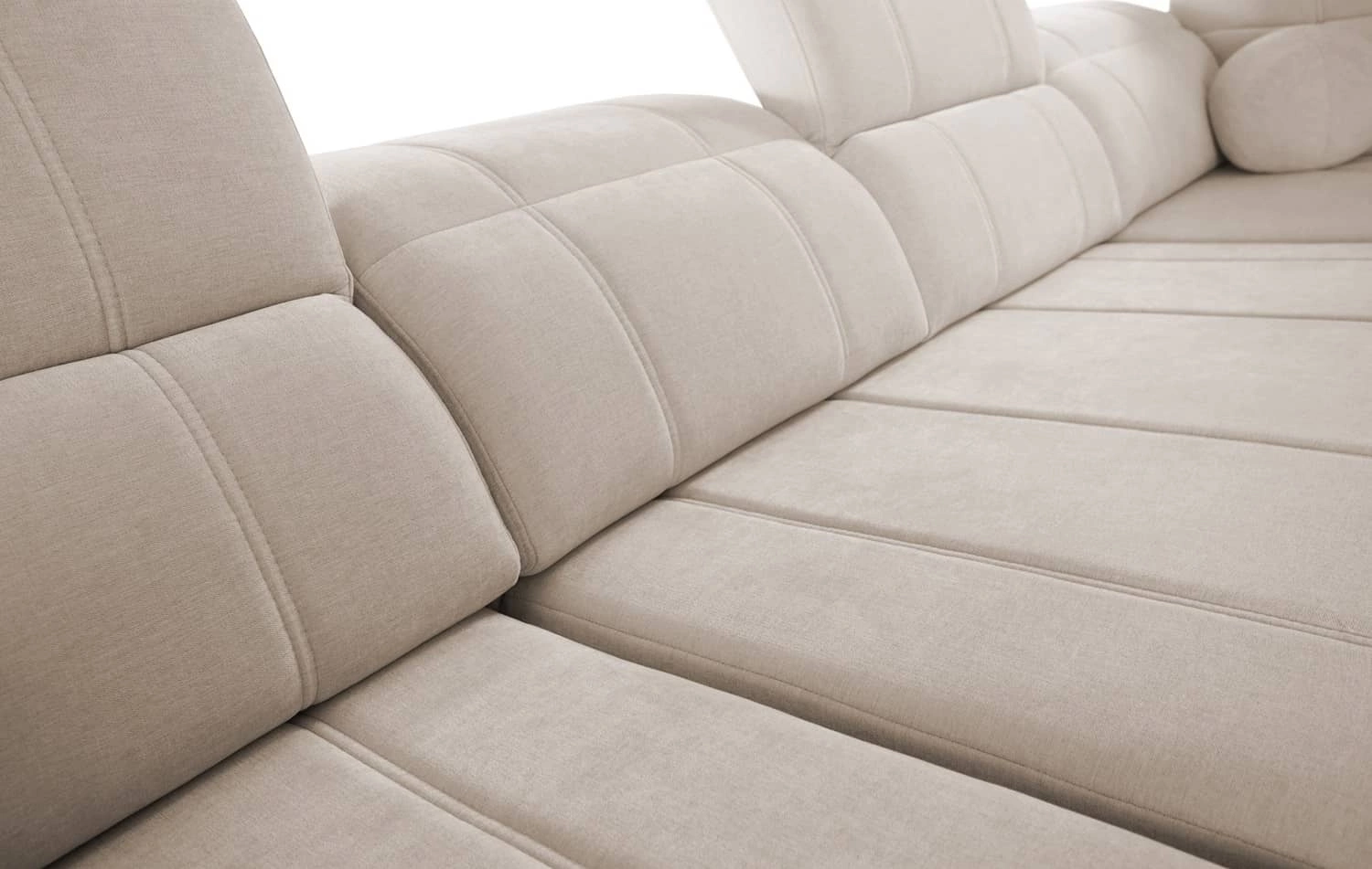 Rohová jednotka s funkcí spánku Cetara XII kombinuje funkčnost s mimořádně stylovým a elegantním tvarem. Celá je pokryta tkanina pletený typ Vítr 05. Rohová jednotka se vyznačuje zajímavým designem, množstvím příslušenství v podobě dekorativních polštářů, který zajistí ještě větší komfort a pohodlí této vysoce moderní rohové jednotky a vysoká kvalita zpracování. Stylová rohová sedací souprava je obohacena o inovativní funkci posuvné opěradlo pro nastavení hloubky sedáku. Moderní rohový design splní i ta nejnáročnější očekávání z hlediska funkčnosti a designu.