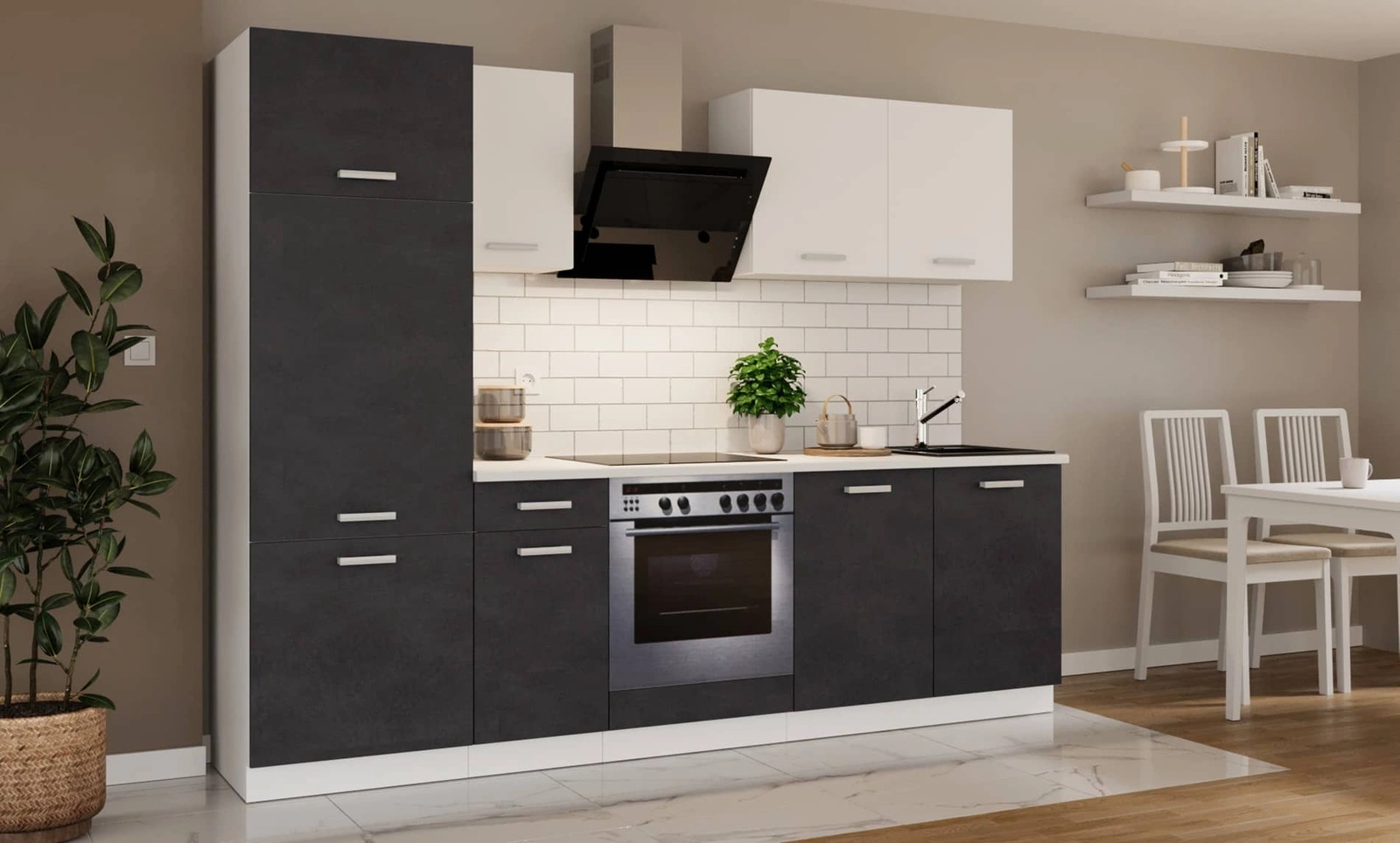 Hotová sestava kuchyňského nábytku je skvělou volbou pro vybavení menší kuchyně, kde je hlavní prioritou úspora místa. Kuchyňská sestava Toni bude také pohodlným řešením pro vytvoření funkčního kuchyňského zázemí v kanceláři.