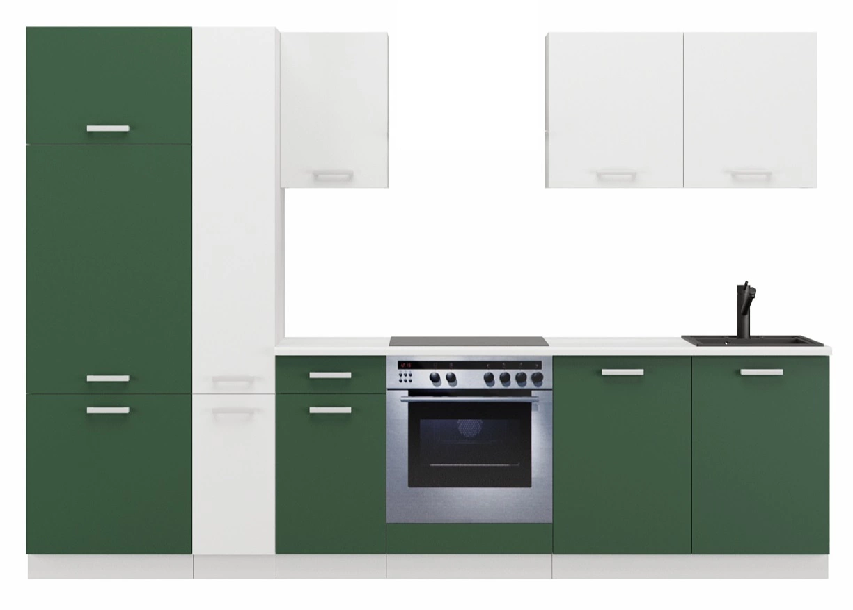 Sestava kuchyňského nábytku s pracovní deskou Toni 290 cm bílá / pastelově zelená Nábytek vypadá skvěle v moderních interiérech