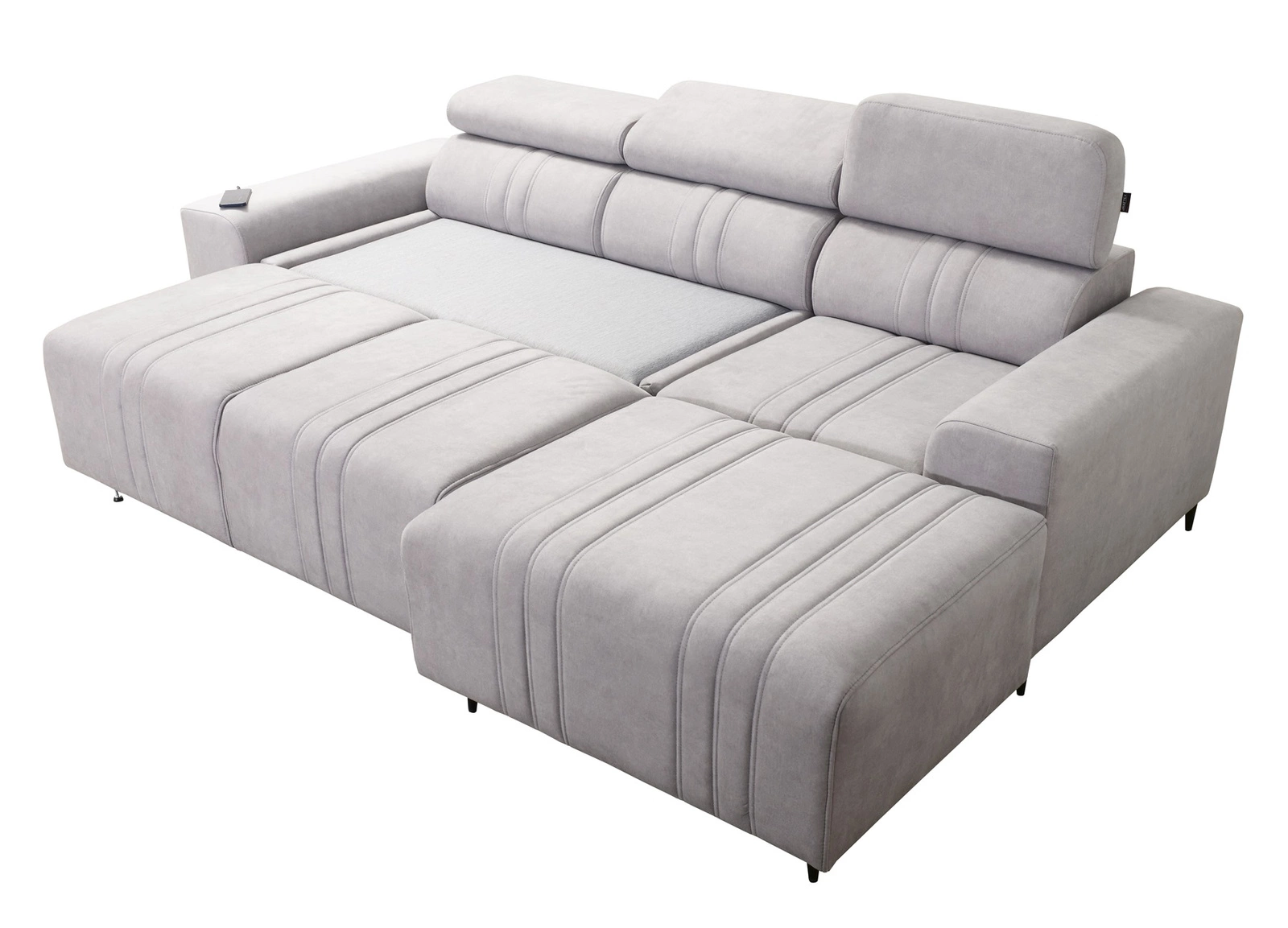 Mezi doplňky tohoto nábytku, které ocení všichni uživatelé, patří kontejner na lůžkoviny, nastavitelné opěrky hlavy a nabíjecí zásuvka USB v boční části rohové skříně.
