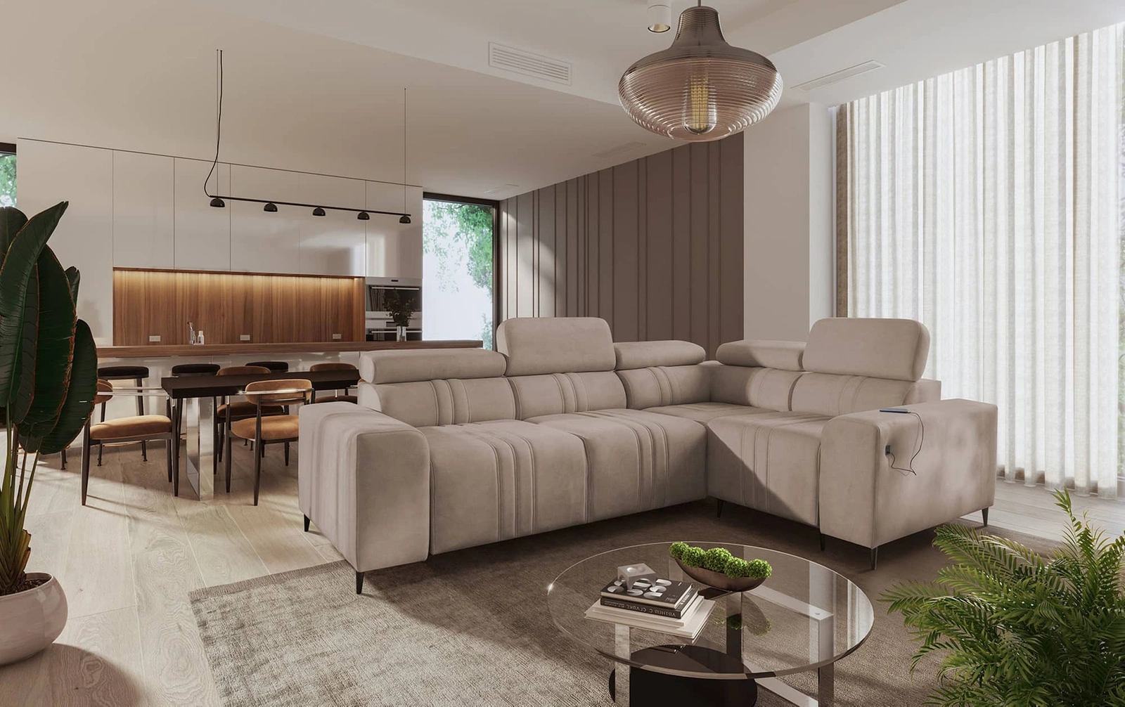 Narożnik z funkcją spania Caste II Narożnik rozkładany do salonu Narożniki do pokoju dziennego