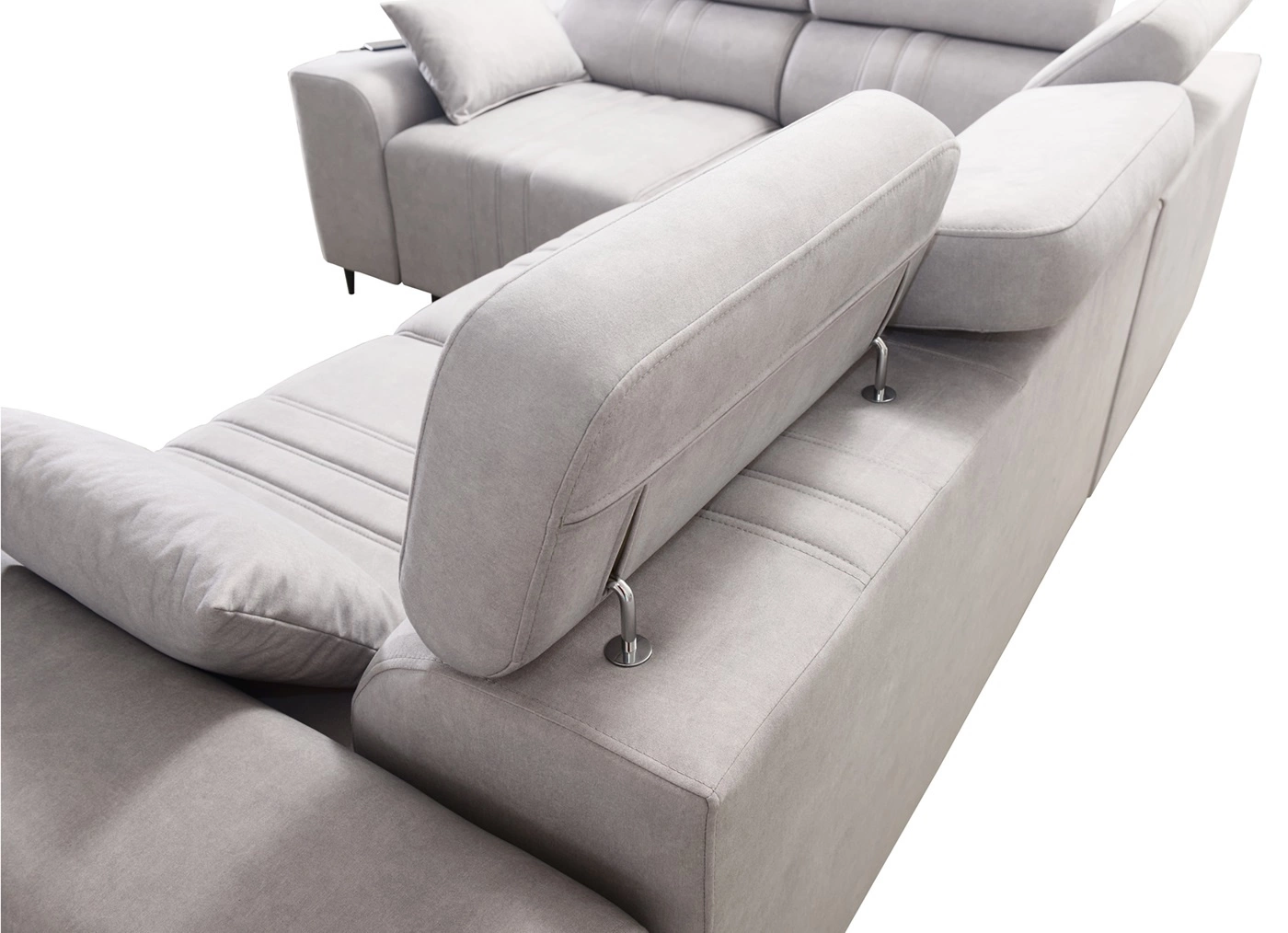 Mezi doplňky tohoto nábytku, které ocení všichni uživatelé, patří kontejner na lůžkoviny, nastavitelné opěrky hlavy a nabíjecí zásuvka USB v boční části rohové skříně.