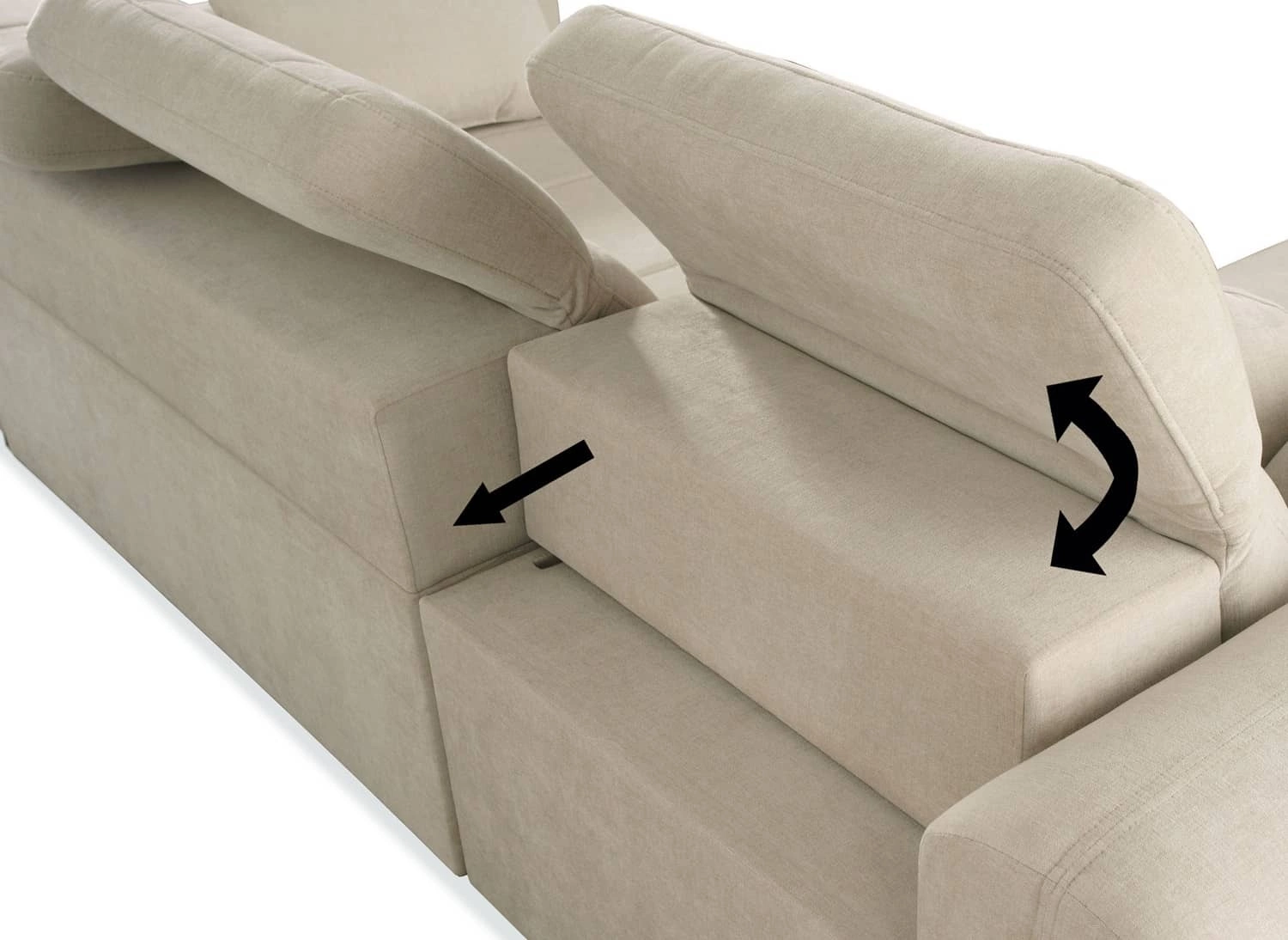 Dalšími prvky tohoto nábytku, které ocení všichni uživatelé, jsou nastavitelné opěradlo umožňující nastavení hloubky sedáku a dva kontejnery na lůžkoviny.