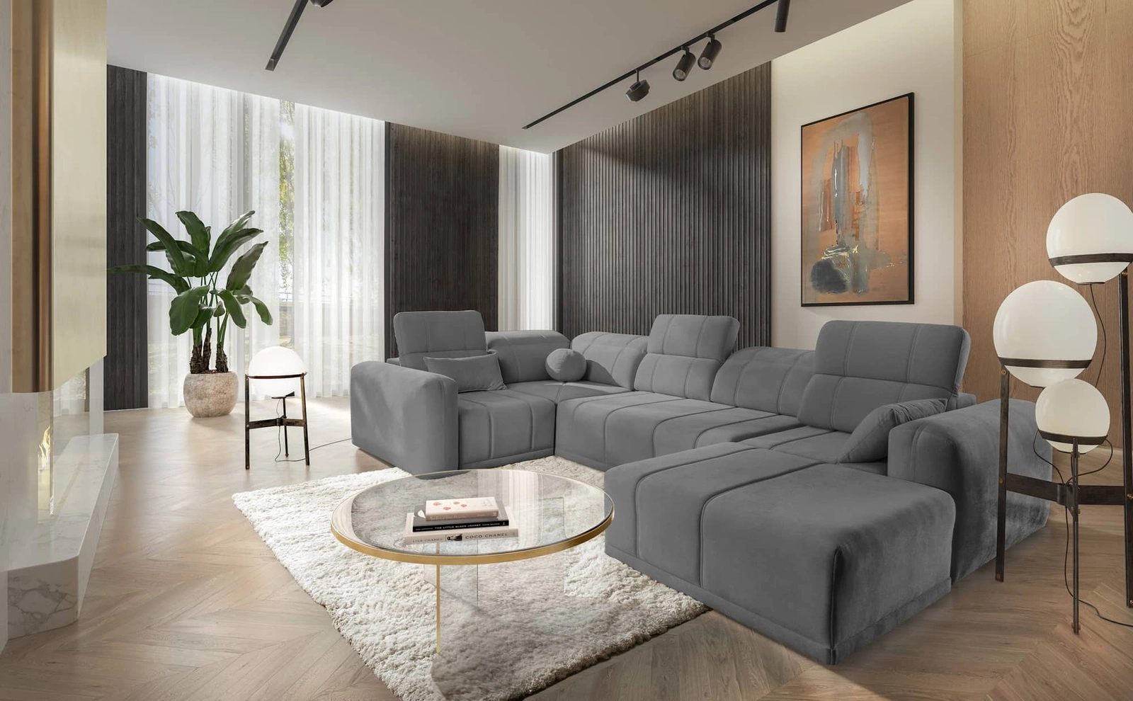 Rohová pohovka Cetara IV v šedé barvě je mimořádně funkční kus nábytku se stylovou povrchovou úpravou.