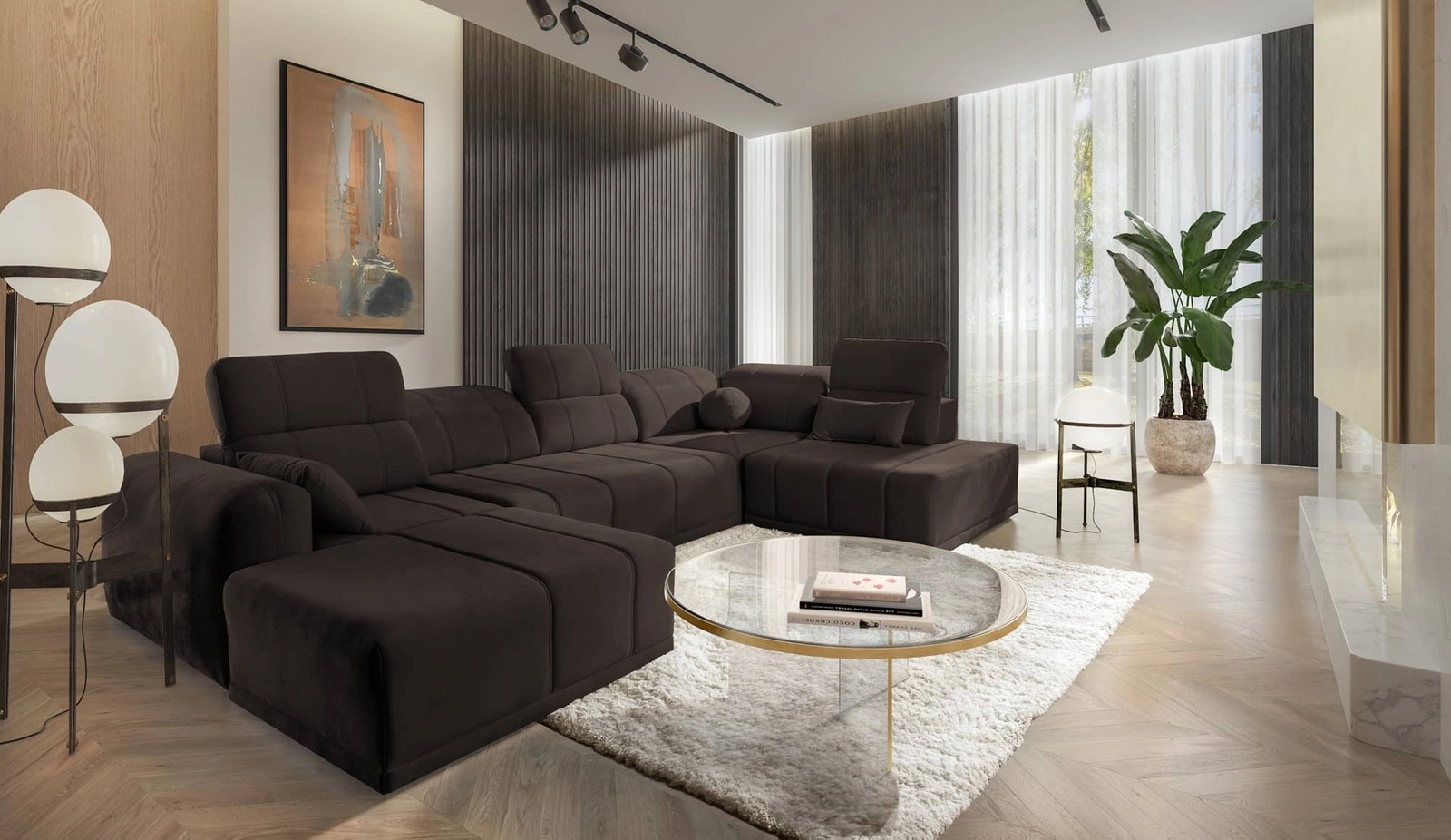 Rohová pohovka Cetara VI v hnědé barvě je mimořádně funkční kus nábytku se stylovou povrchovou úpravou.
