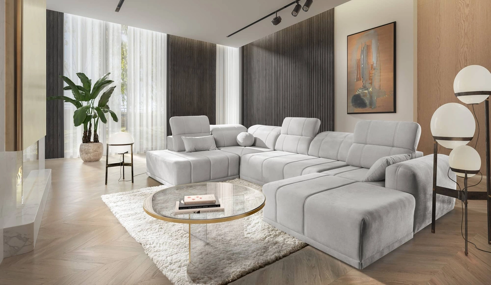 Rohová pohovka Cetara VI v šedém jasanu je mimořádně funkční kus nábytku se stylovou povrchovou úpravou.