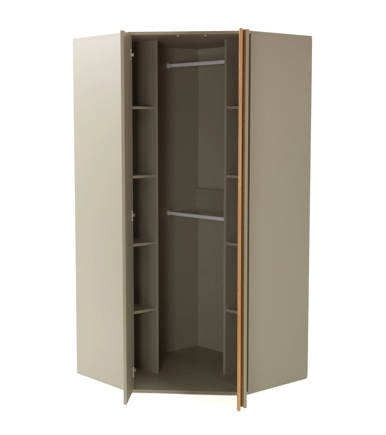 Rohová šatní skříň Paguro eukalyptus / baltický dub dune moderní design s povrchovou úpravou ABS šatní skříň do pokoje pro mládež