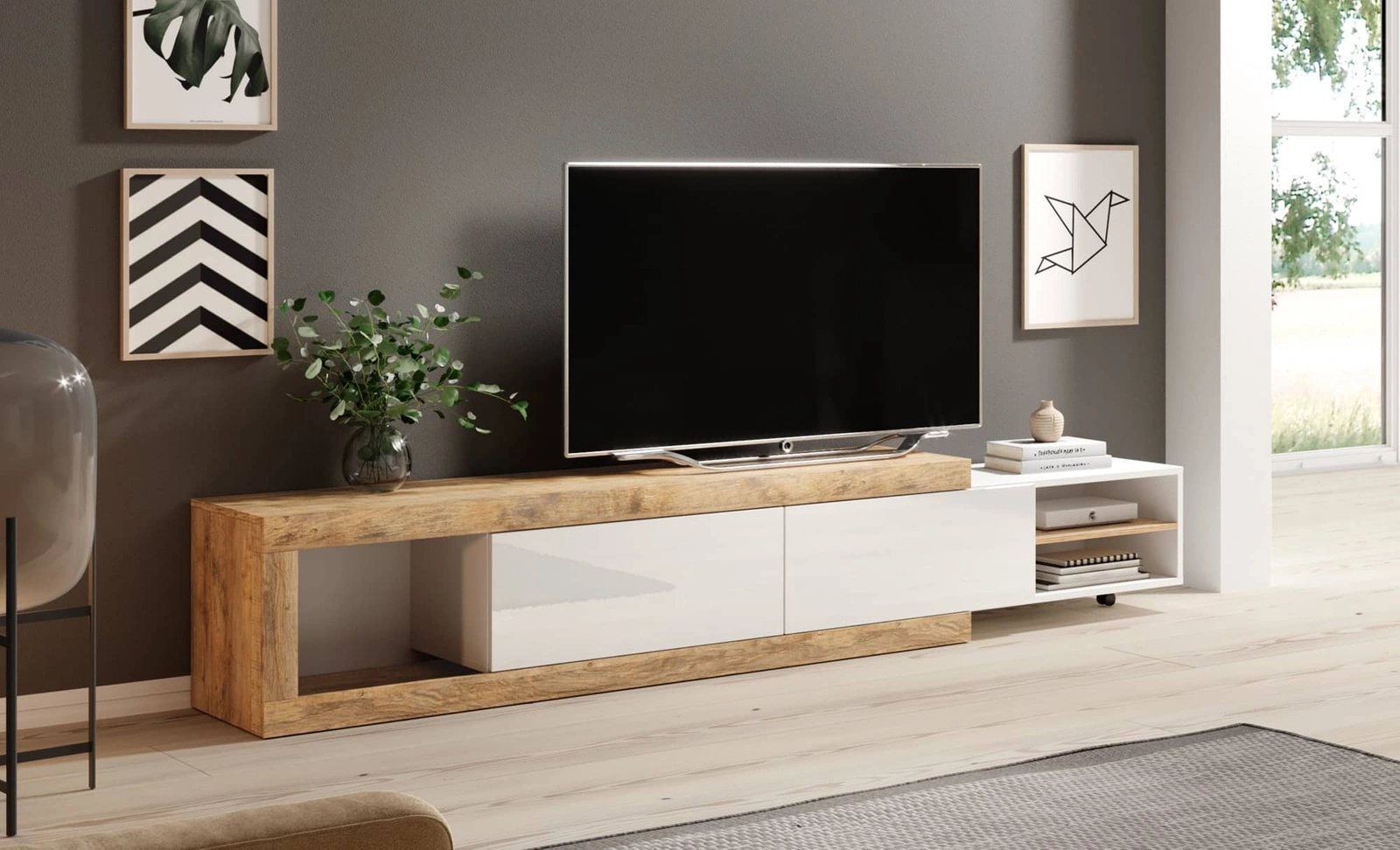RTV skříňka Sintra je originální a elegantní design, který dokonale zapadá do současných trendů v interiéru.