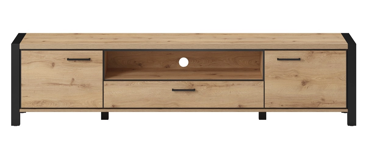 Skříňka RTV Aktiv 210 cm dub taurus / černá stylová TV skříňka s kovovými černými úchytkami industriálního charakteru