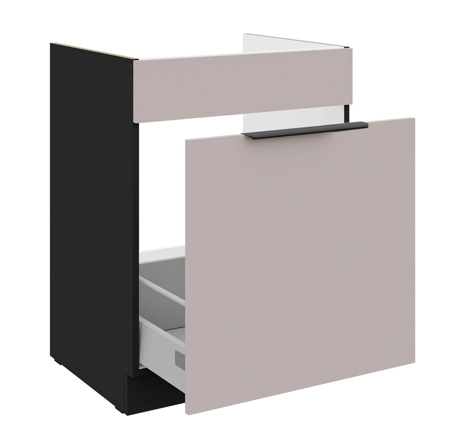 Kuchyňská skříňka Tarraco pod dřez 60 cm v béžové/černé barvě patří do kategorie modulárního kuchyňského nábytku, ze kterého lze vytvořit libovolné sestavy.