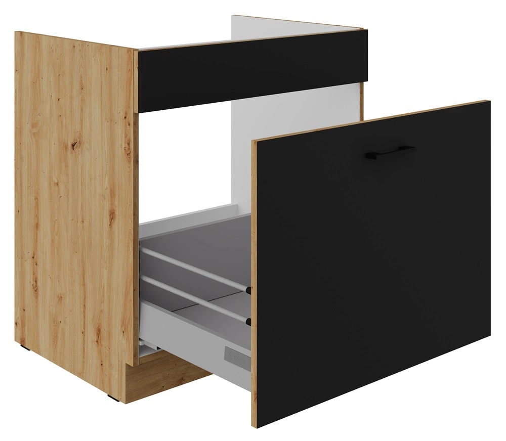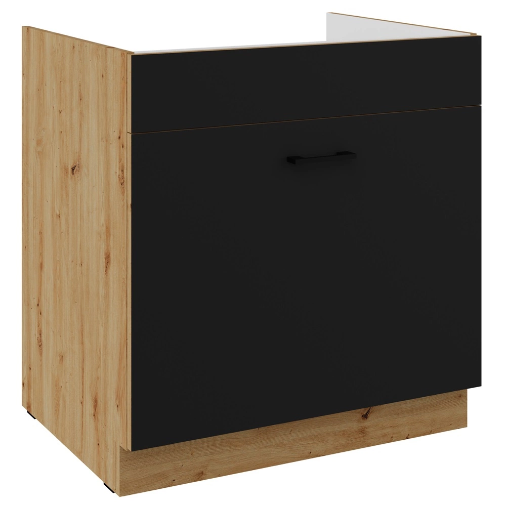 Kuchyňská skříňka pod dřez 80 cm Mozna v provedení černý mat / dub artisan patří do kategorie modulového kuchyňského nábytku, ze kterého lze vytvořit libovolnou sestavu.