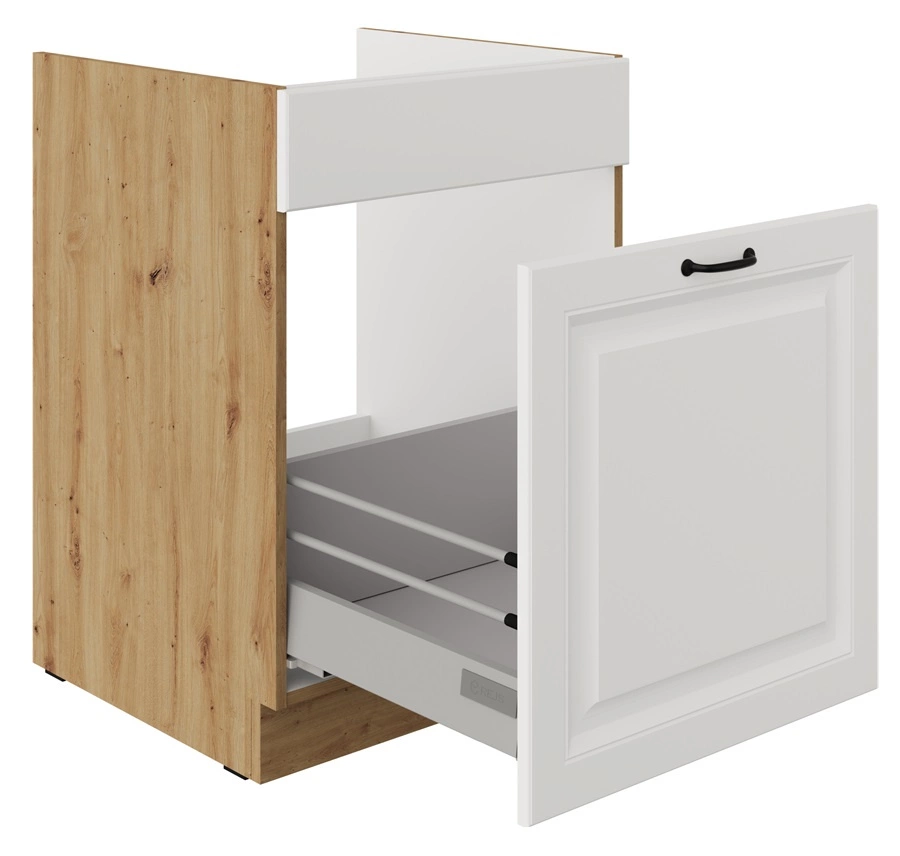 Pro usnadnění instalace odtoku byla kuchyňská skříňka zbavena zadní stěny. Kuchyňská skříňka Scandi má 1 zásuvku vyrobenou technologií Premium Box. Zásuvky Premium Box se vyznačují zvýšenou pevností, takže je možné skříňku naplnit až po okraj kuchyňským náčiním a příslušenstvím. Skříňka pod dřezem je vhodná i pro použití košů na třídění odpadu. Systém tichého zavírání zásuvek zvyšuje pohodlí a bezpečnost použití nábytku.