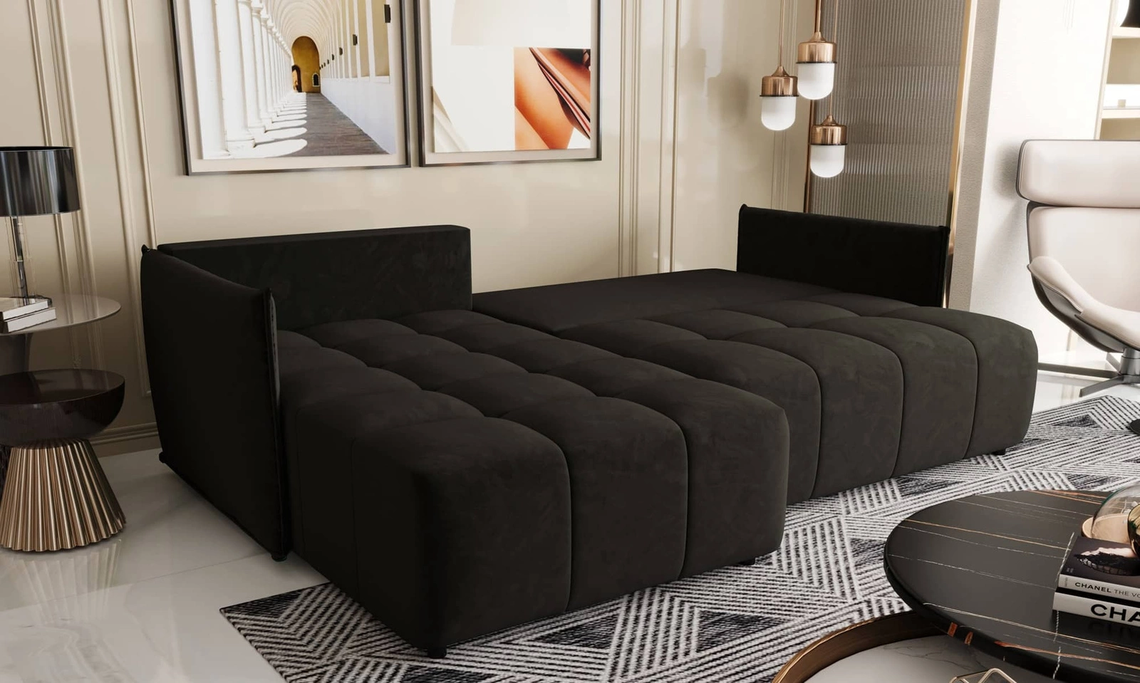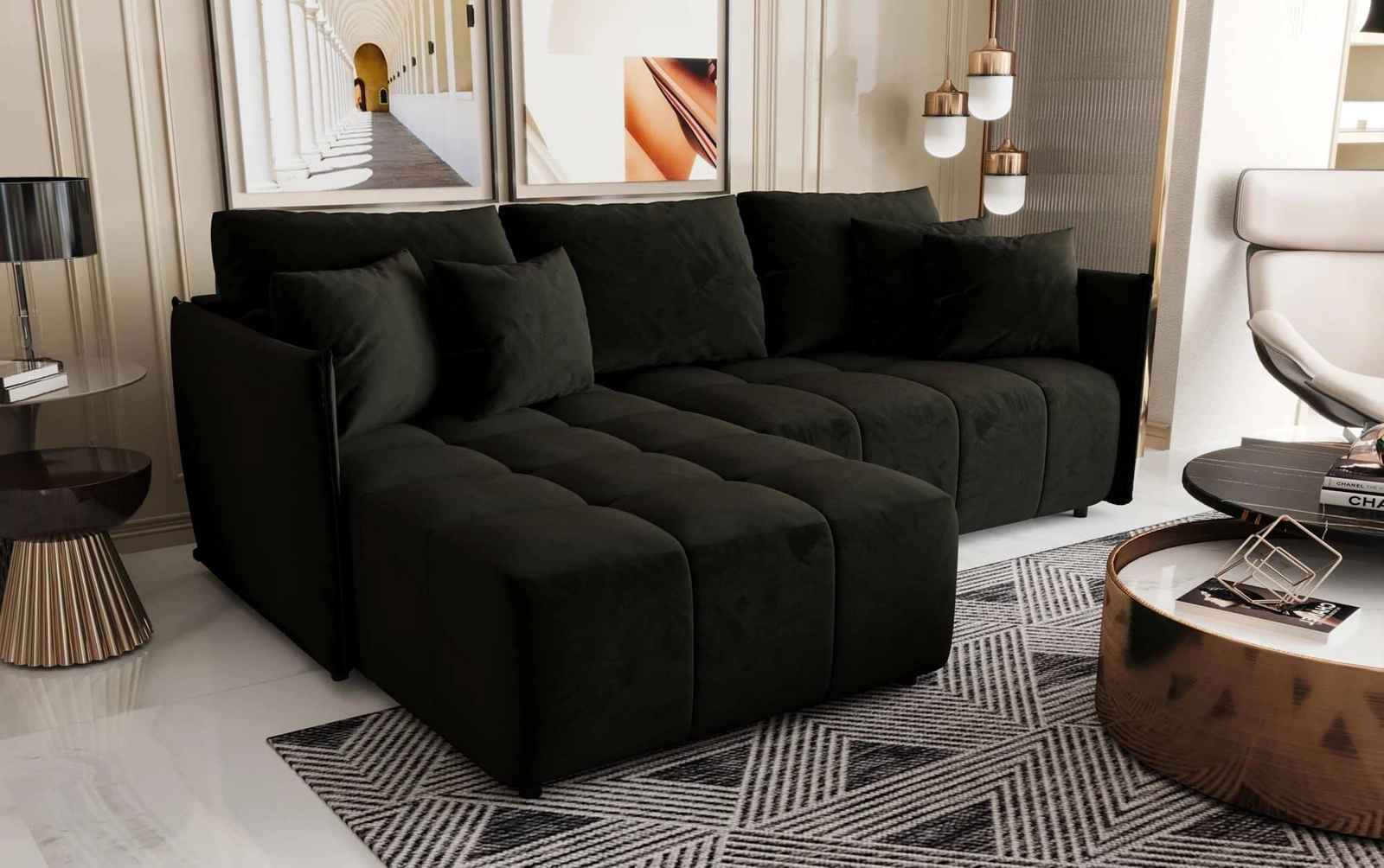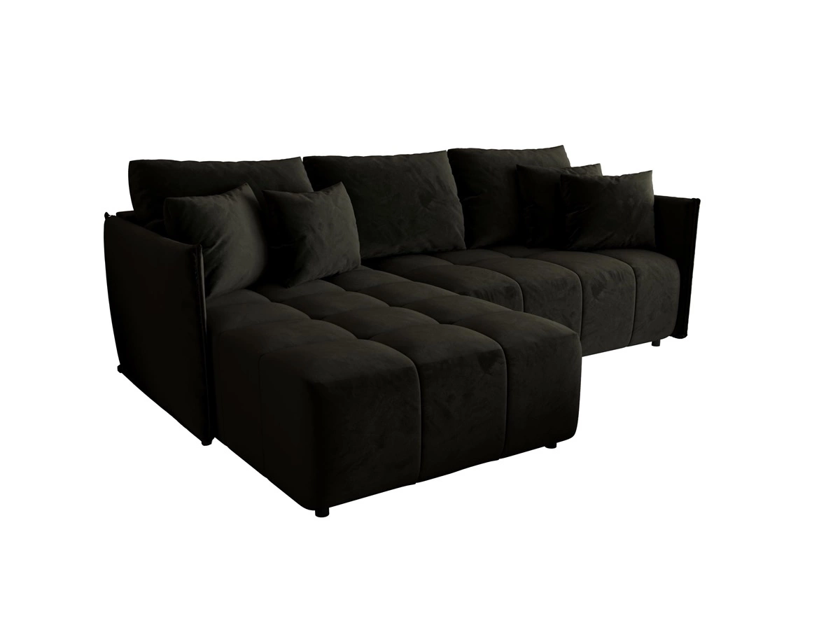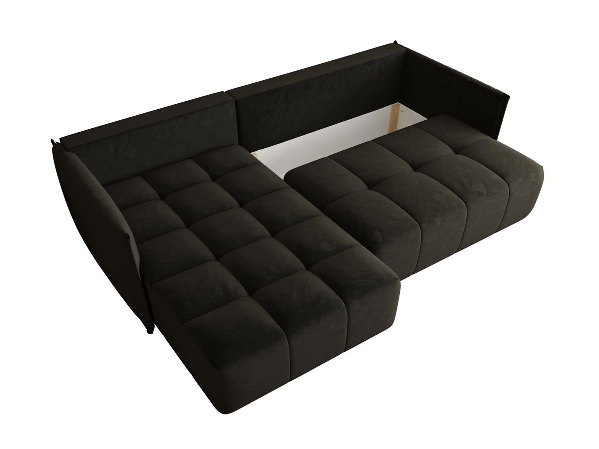 Rozkládací pohovka Oroso graphite levá měkká sametová tkanina s hydrofobním povlakem nádoba na lůžkoviny