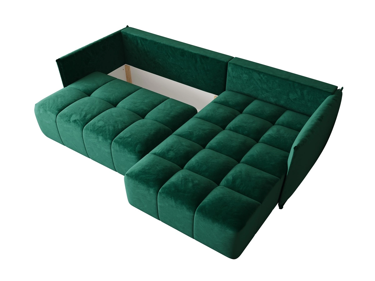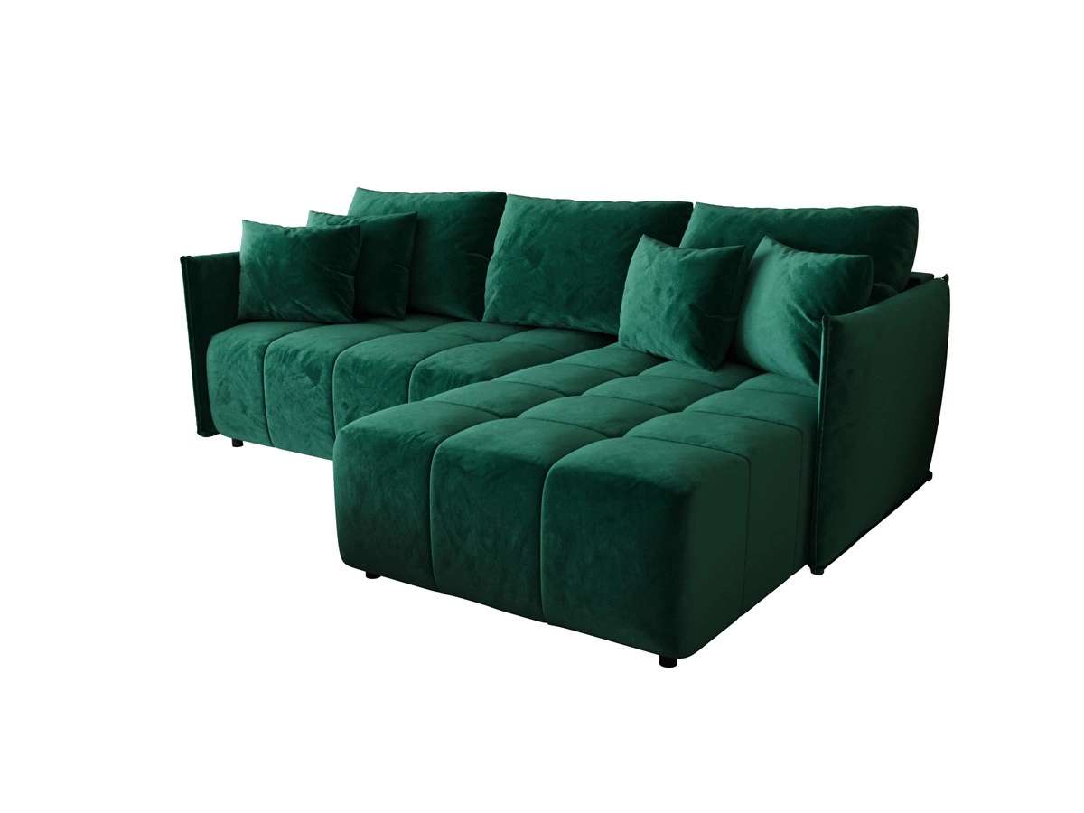 Rozkládací pohovka Oroso láhev zelená pravá strana měkká sametová tkanina s hydrofobním povlakem nádoba na lůžkoviny